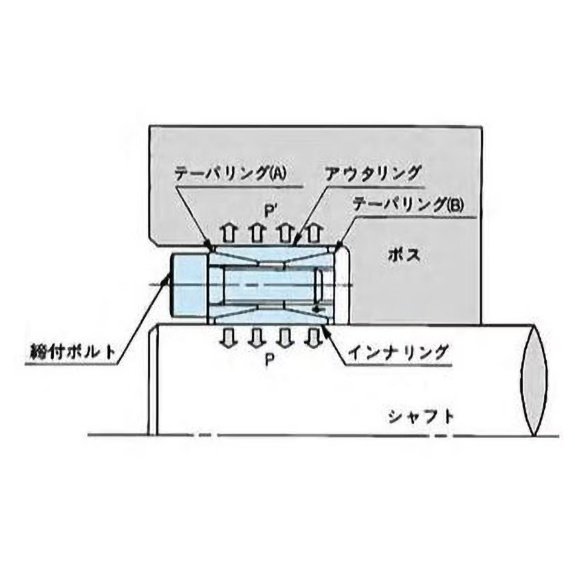 キー等を使わず軸とボスを締結させる摩擦式締結具です。