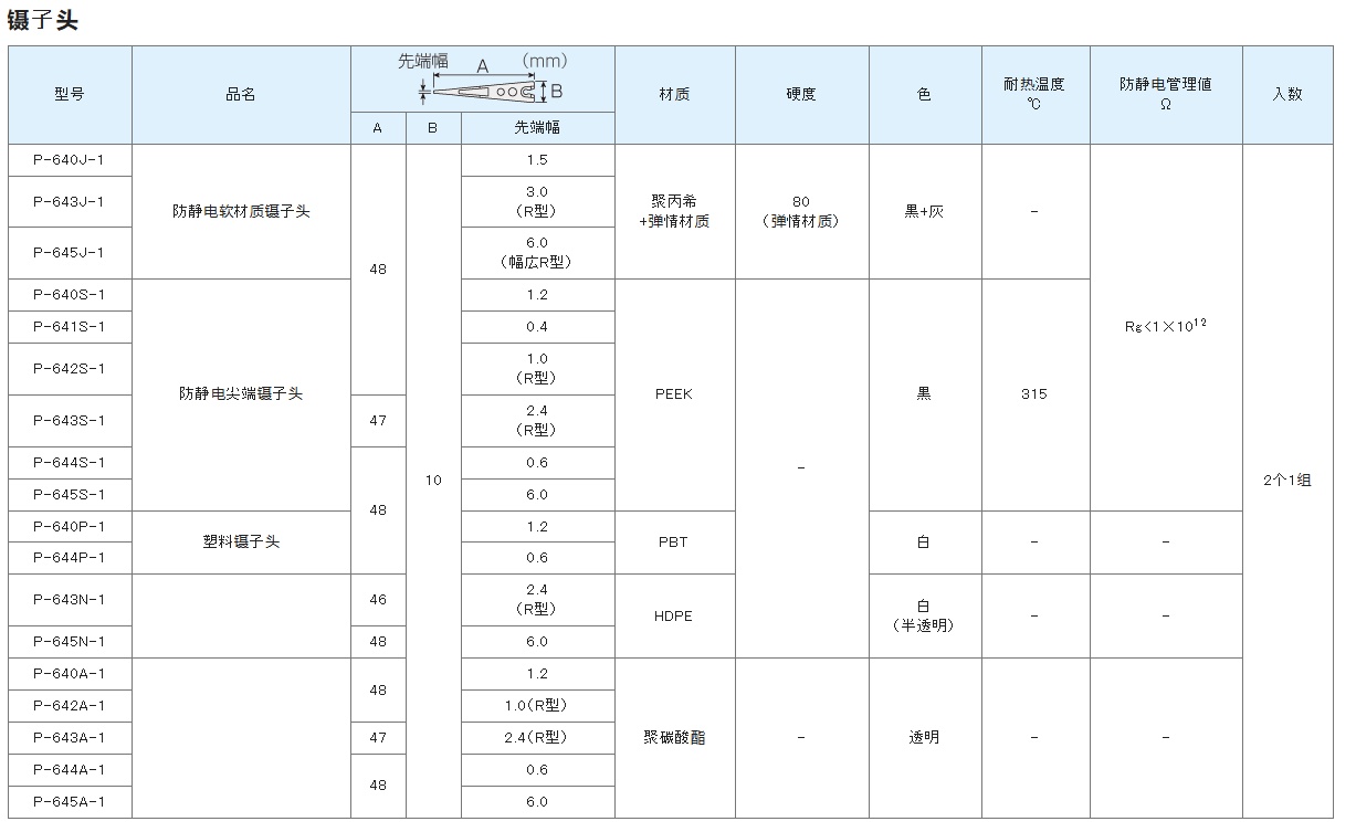 更换镊子头P-640J-1