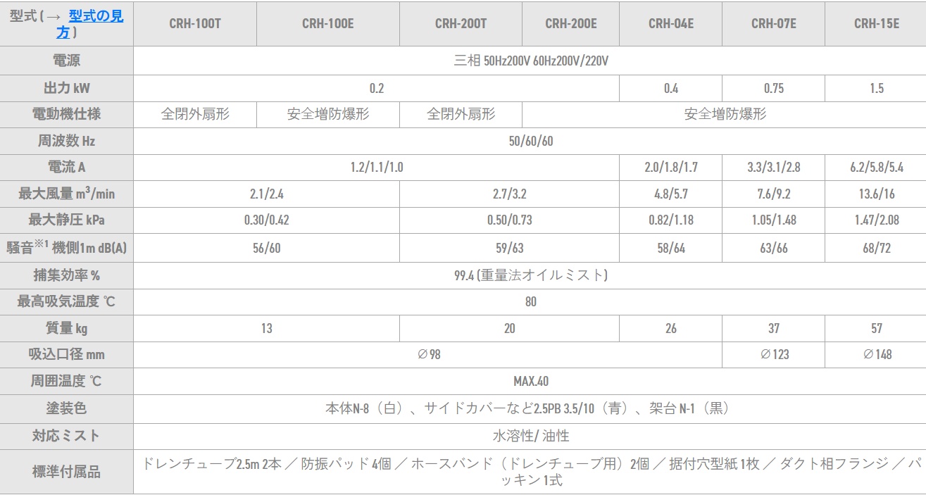 電動機部を機外に設けた構造で、80℃までの高温ミストの吸引が可能です。