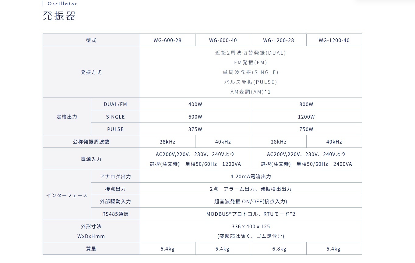 単周波の出力変調断続発振により、ソフトな洗浄や脱気促進に有効です。