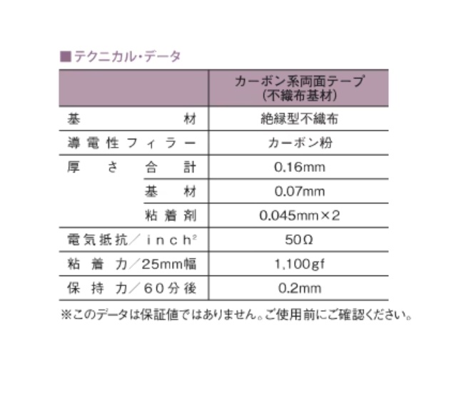 规格参数:三款胶带长度均为 20m,基材均为无纺布,胶系为丙烯酸,导电物质为碳粉,电阻率<5 ohms/mm²,总厚度 160μm(其中基材厚度 70μm,双面黏胶各 45μm),内芯为蓝色,带离型纸,适合室温使用,加热易导致黏合剂溶解。具体型号规格为 NO.731 宽度 5mm,NO.7311 宽度 8mm,NO.7313 宽度 20mm,包装均为单卷,适配 SEM 与 EDS 等微观分析仪器的样品固定,为科研与工业检测中的样品制备提供标准化导电粘结方案。