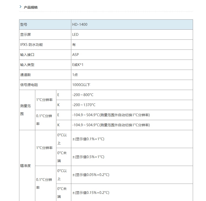参比端补偿温度精度 ±0.2°C(25°C±10°C)