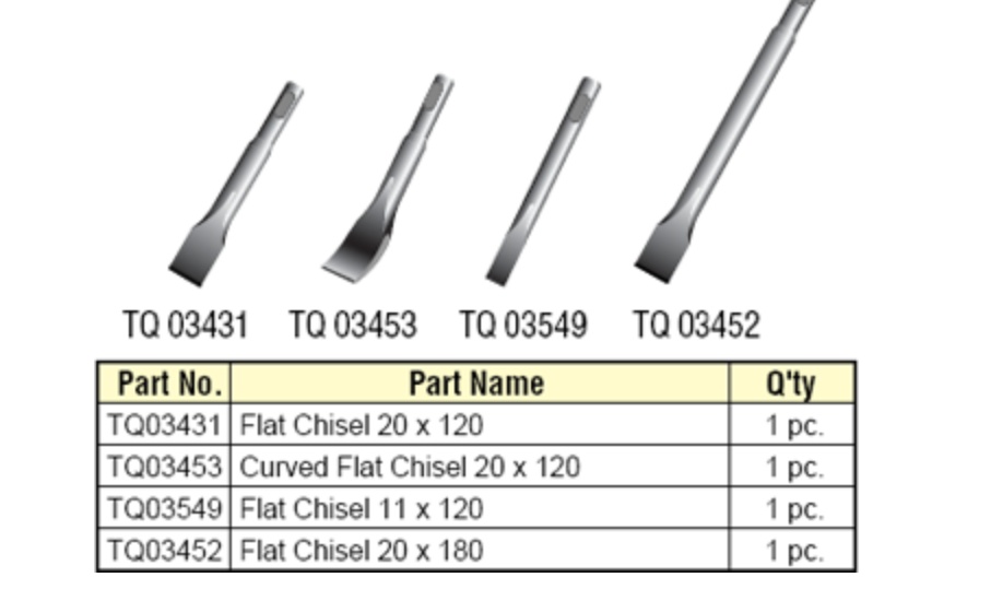 付属品フラットチゼル(20×120)×1本 質量(kg)1.0 本体寸法(mm)全長147 空気消費量(m3/min)0.15 使用圧力(MPa[kgf/cm2])0.59[6] 無負荷打撃数(min-1)6000 トラスコ品番116-6972 種別空気式固着物はくり機