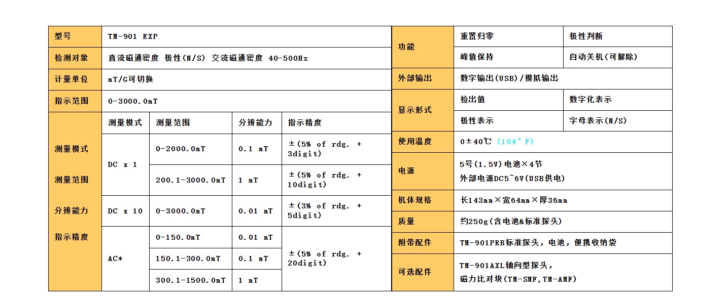 TM-901PRB和TM-901AXL与本公司历代泰斯拉测量仪(TM-501、TM-601、TM-701、TM-801)兼容。