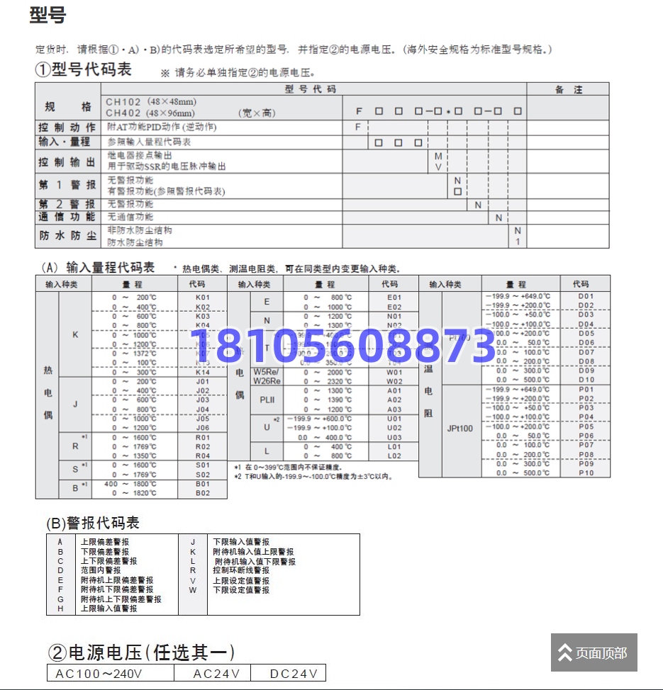 警报/事件输出功能(最多1点):温度警报、回路断线警报