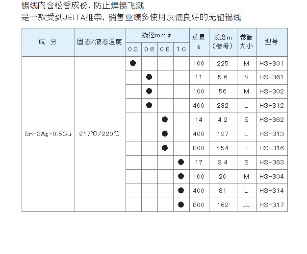 HOZAN宝三无铅锡线系列HS-301~317 / HS-361~363 Sn-3Ag-0.5Cu详询;18105608873
