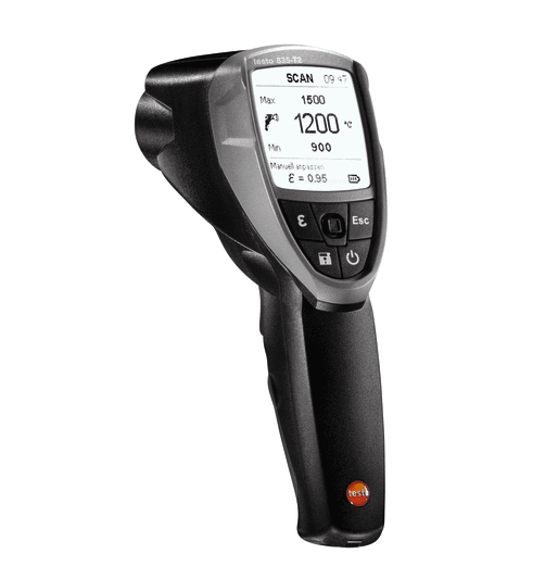 testo 835-T2是您非接触高温测量过程中不二之选。 testo 835 T2温度量程高达1,500 °C,适用于安全精确的测量运动中的物体表面温度。