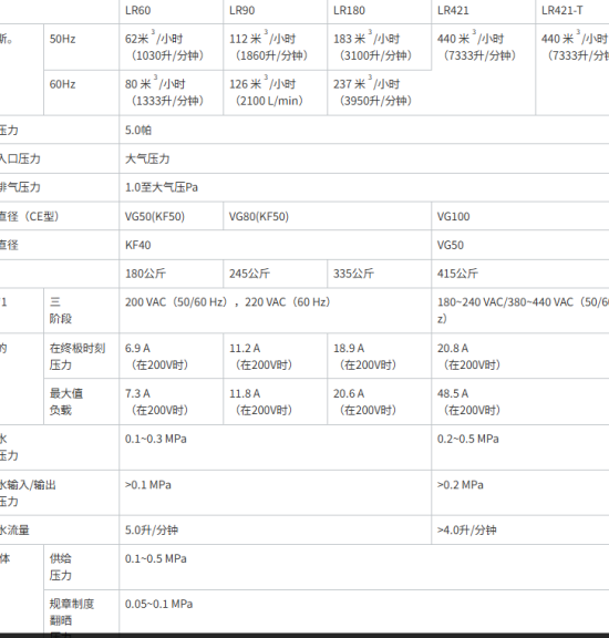 ULVAC爱发科真空泵LR系列LR60/LR90/LR180/LR421/LR421-T详询:18105608873