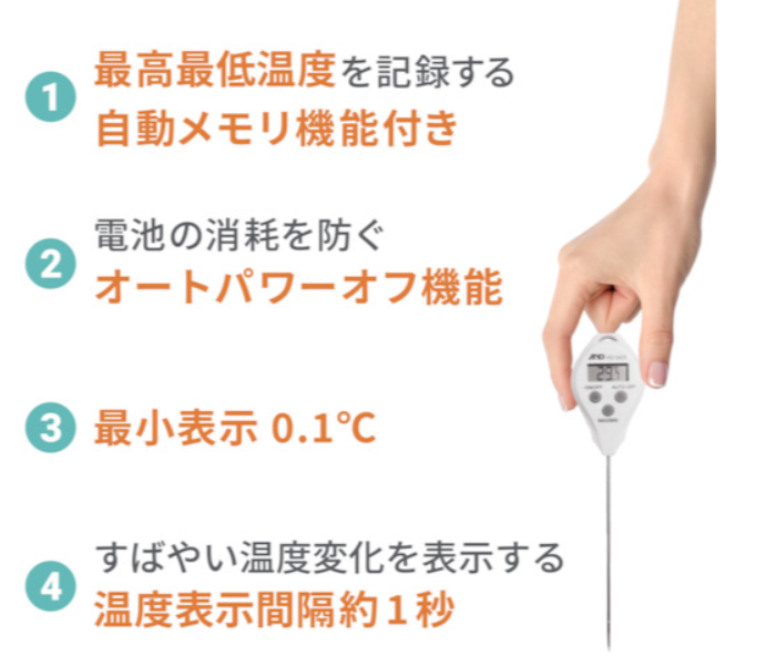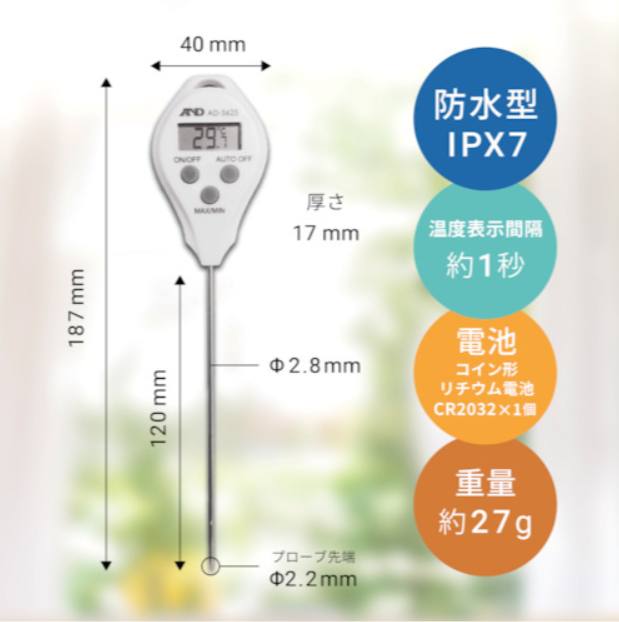 AND/A&D防水型小型中心温度计白色AD5625 详询:18105608873