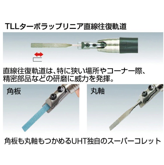 直線往復軌道は、特に狭い場所やコーナー際、精密部品等の研磨に威力を発揮。