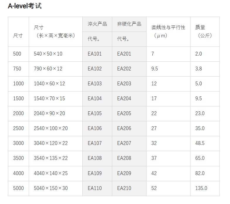 精度方面是尺寸(与标称尺寸相同)减去两端各20毫米。