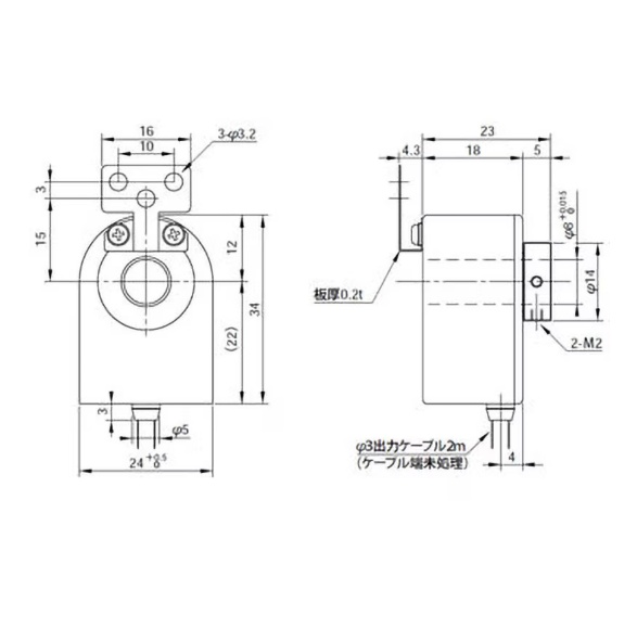 パルス数2000 用途計測 仕様慣性モーメント:4gcm2 質量(g)70(ケーブル含む) タイプ測長