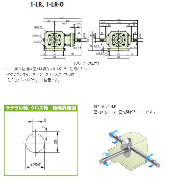 軸端仕様:新 JIS キー(JIS B1301-1976)付き、軸端にタップ加工あり