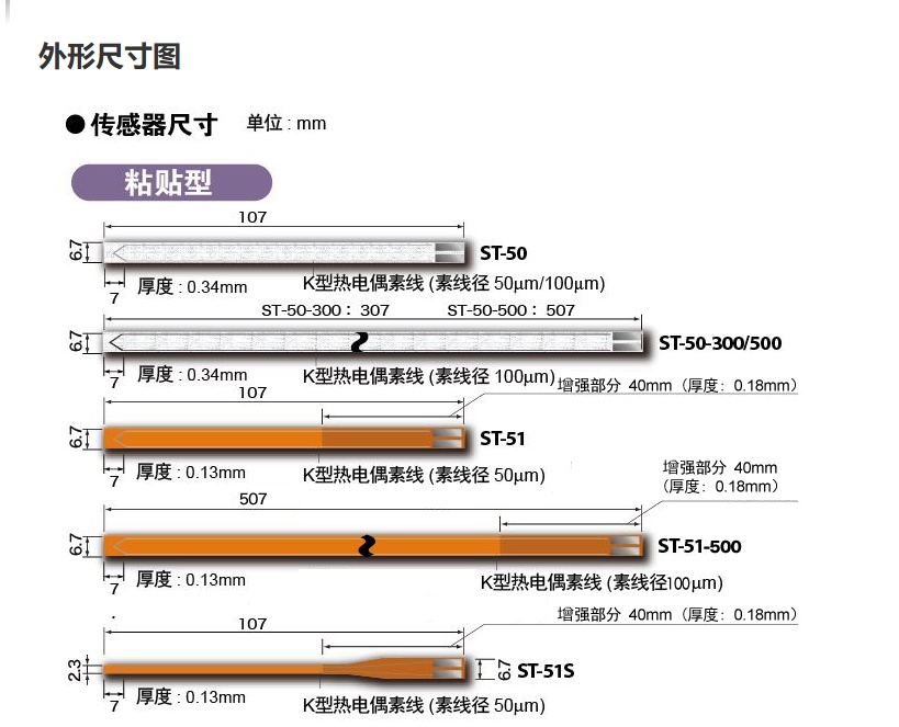 厚度仅0.34mm或0.13mm的热电偶温度传感器
