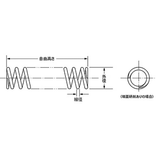 自由高(mm)52.4 外径(Φmm)5.40 線径(Φmm)0.40 材質SUS304WPB 仕上両端研磨なし ばね